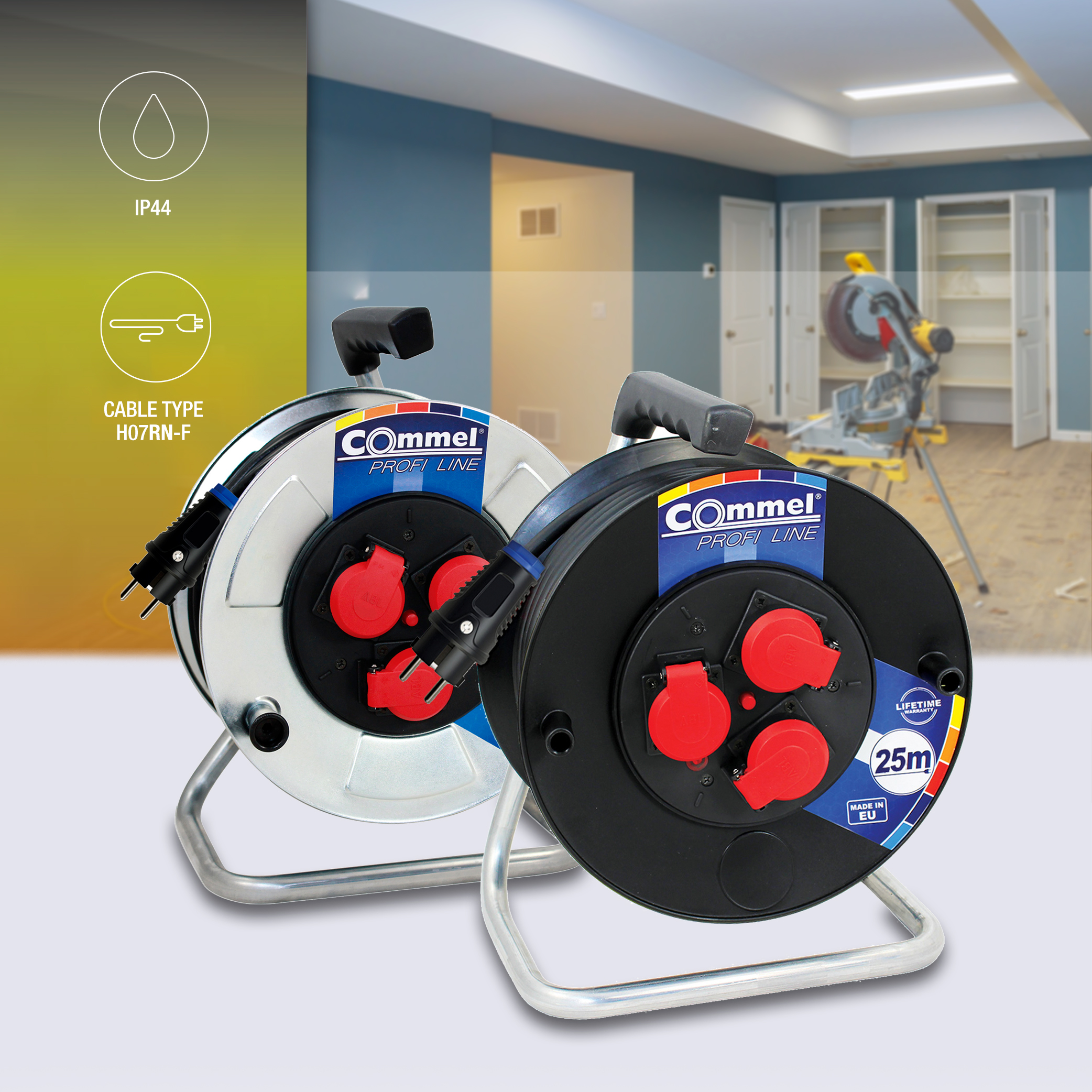 Robusnost kućišta, bubnja, utičnica, kabela i ostalih komponenti ono je što Commel kabelske motalice čini posebnima. Sve Commel kabelske motalice dolaze sa doživotnim jamstvom.