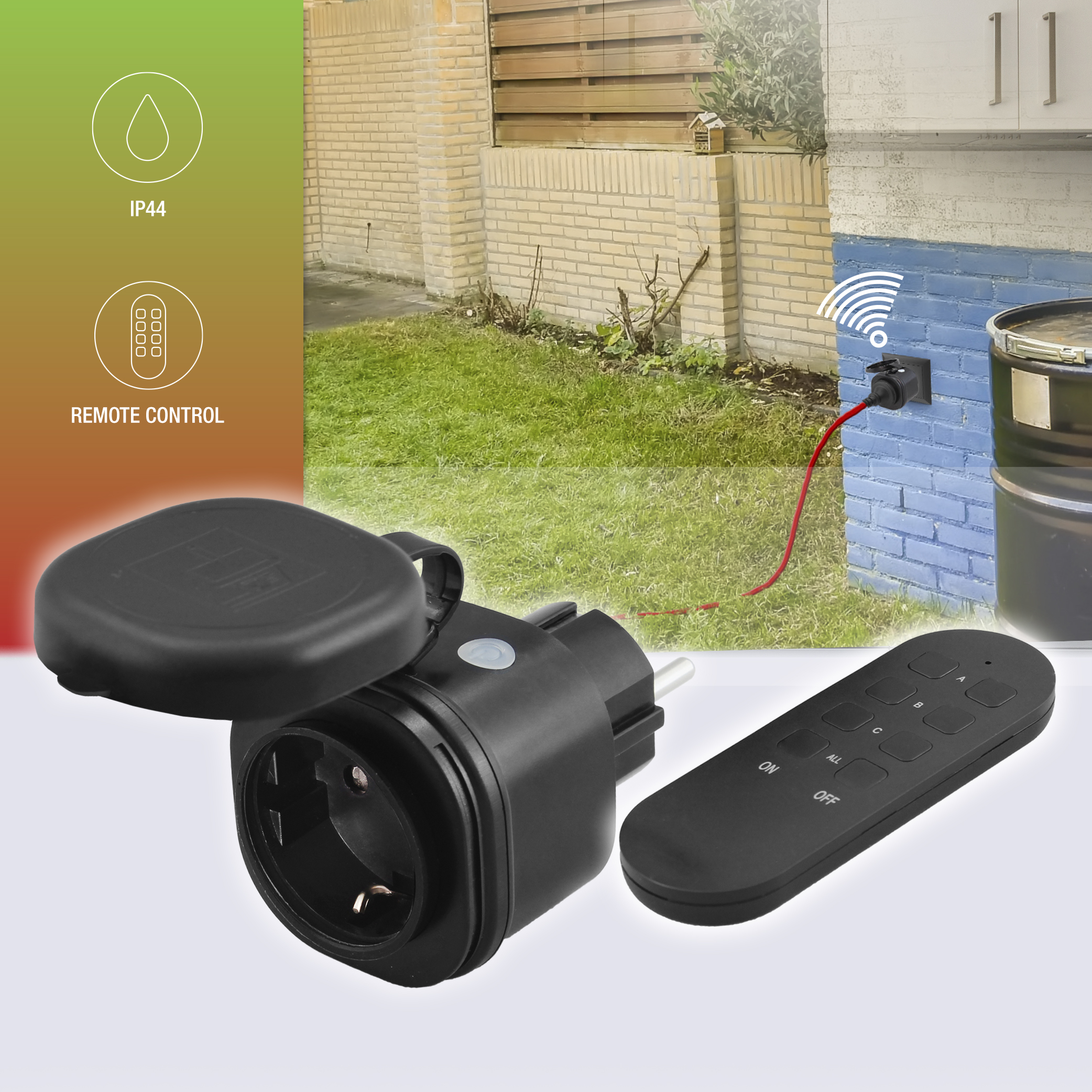 Nova utičnica s daljinskim upravljačem 265-117 za primjenu na otvorenom (IP44) Uključite ili isključite bilo koji priključni uređaj korištenjem daljinskog upravljača. Jednostavno automatsko programiranje. Uređaj koristi radio frekvenciju (433,92 MHz) za daljinsko upravljanje pa nije potrebno da je uređaj unutar vidnog polja (domet do 30m).