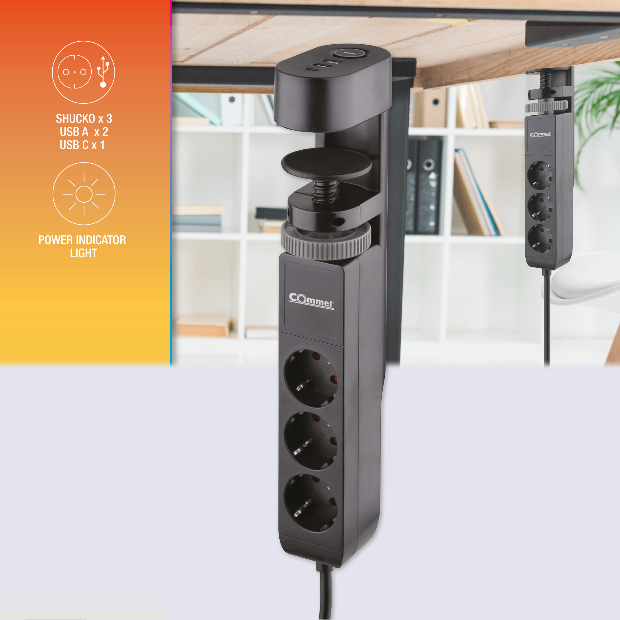 Ovaj proizvod inovativnog i praktičnog dizajna omogućuje lakšu organizaciju kabela jer se strujne utičnice nalaze s donje strane radne površine. Dodatne značajke ovog proizvoda su lako dostupni USB punjači s gornje strane te osvjetljena sklopka. Montaža na stol je jednostavna, bez potrebe za korištenjem alata.